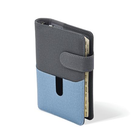 Kalendárium, gyűrűs, betétlapokkal, "L", műbőr, SATURNUS, "229", szürke-kék