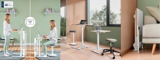 Az ülő-álló asztalok sikerének nyomán a LEITZ új, helytakarékos összecsukható üllő-álló asztallal bővítette asztal kínálatát, amely rugalmas munkaállomás megoldást nyújt a legkisebb helyiségekbe is. Ez a könnyű, hordozható laptopasztal gyorsan és egyszerűen összeállítható, és rendkívül laposra összecsukható, így könnyen elpakolható. Ideális otthoni használatra, irodákba ideiglenes munkaállomásnak, vagy prezentációkhoz; és elegendő helyet biztosít laptop, billentyűzet, egér és akár egy csésze kávé számára. A fokozatmentes pneumatikus magasságállítás megkönnyíti az ülés és állás közötti váltást, ami ösztönzi az izmok mozgását és javítja a közérzetet.