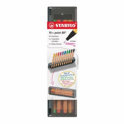 Tűfilc készlet, 0,4 mm, STABILO "Point 88", 10 db-os asztali készlet